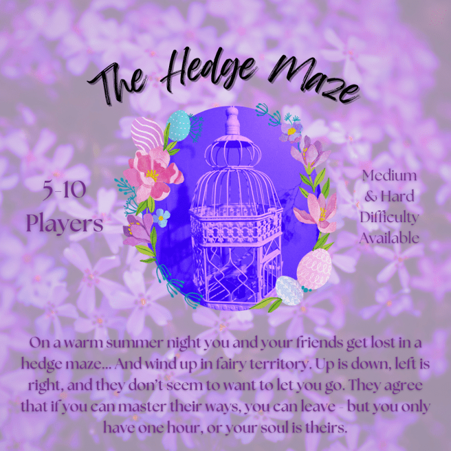 A lovely day in the local botanical gardens goes topsy-turvy when you and your friends find yourself lost at the centre of its hedge maze. The ways out have disappeared and the only other person seems to be a fairy, who refused to help you because she was “waiting for the new queen,” before flying off. Where are you? How can you get home?